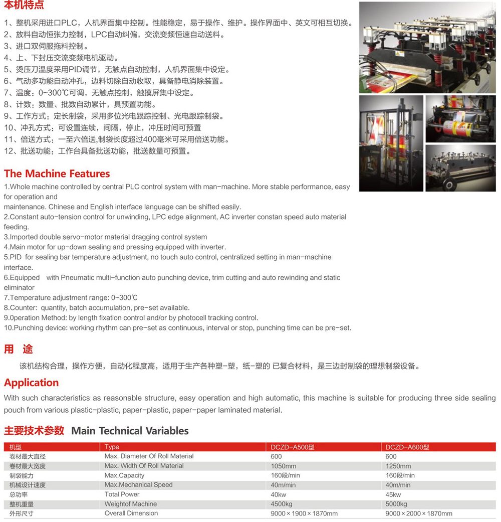 DCZD-A600三邊封制袋機