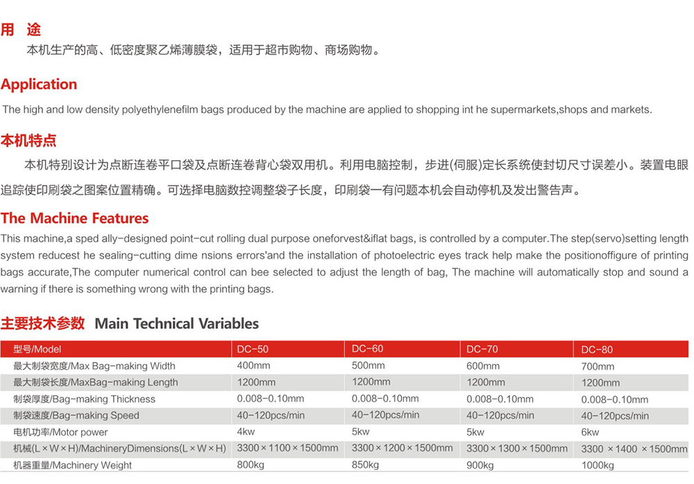 DC-500-800 microcomputer controlled high speed continuous flat pocket - vest bag